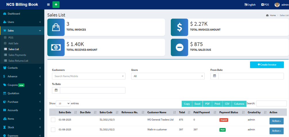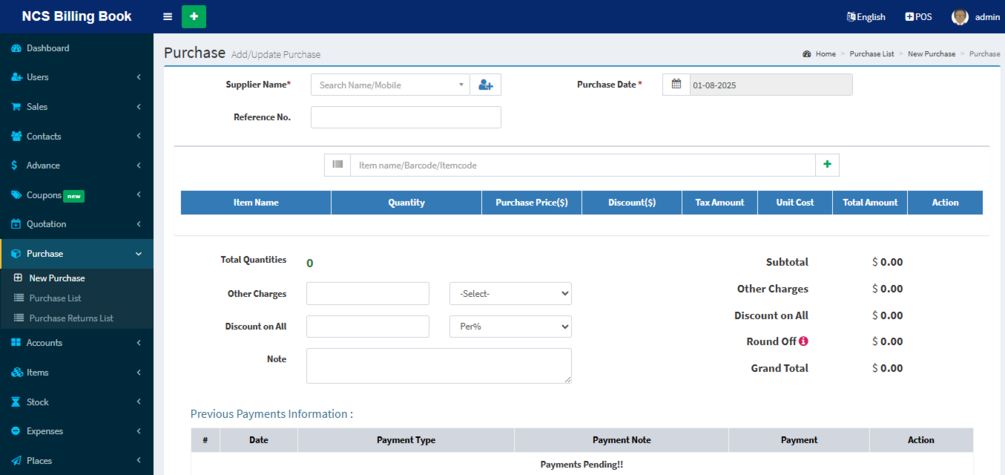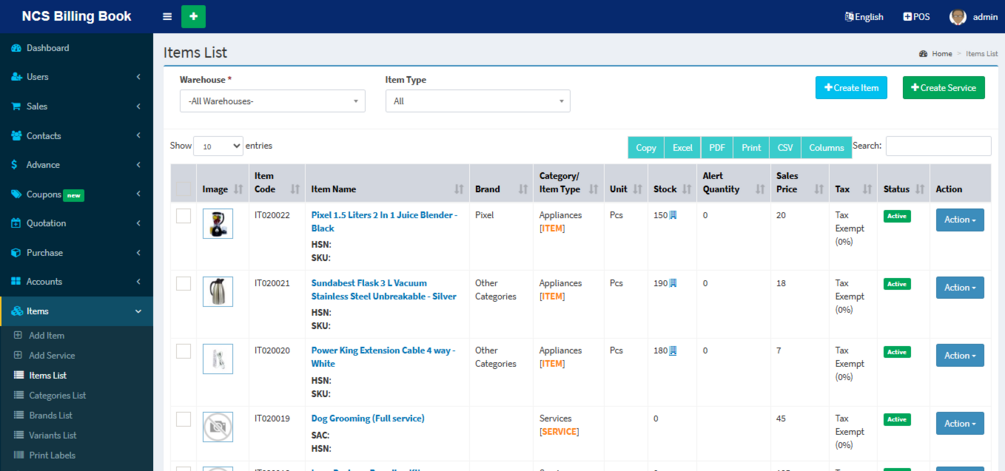 NCS Billing Book is a powerful web-based Point of Sale (POS) and inventory management system built for retailers, wholesalers, and service providers. Designed with PHP & jQuery, it replaces multiple apps by combining POS, inventory, accounting, invoicing, and warehouse management in one secure platform.